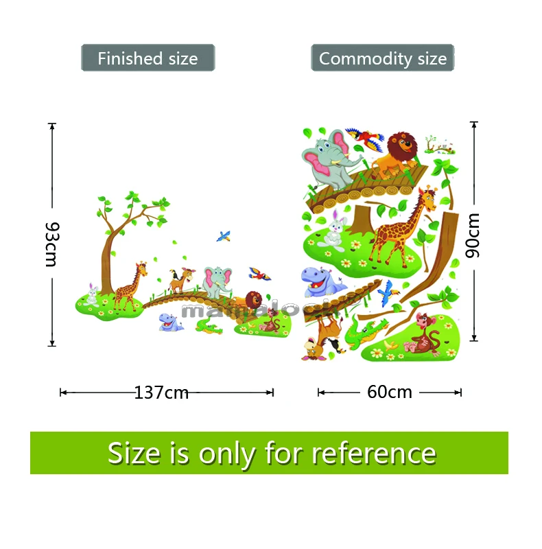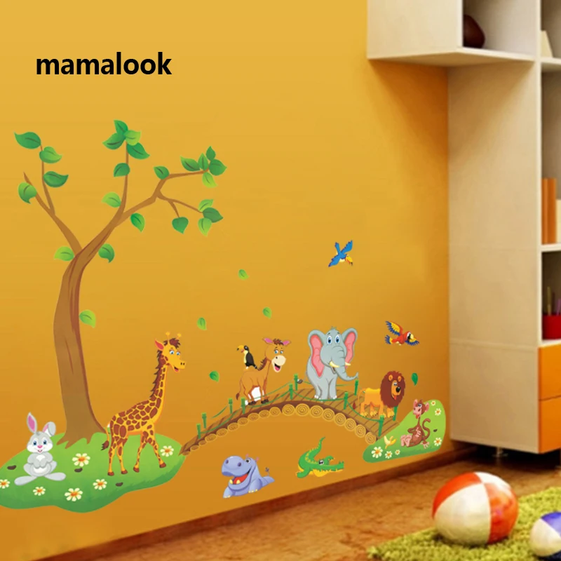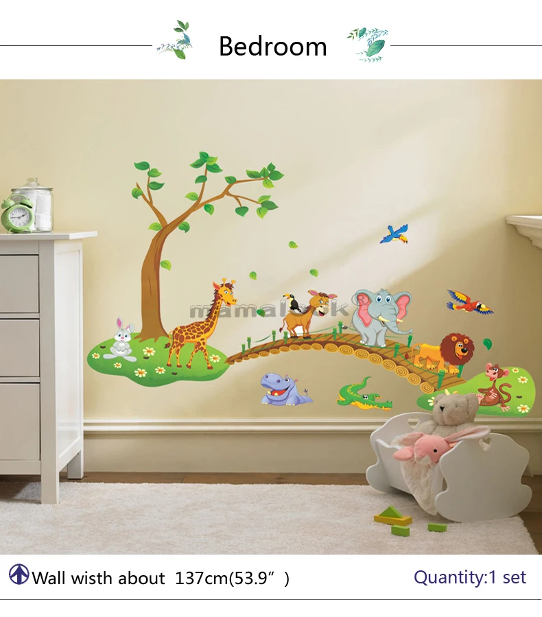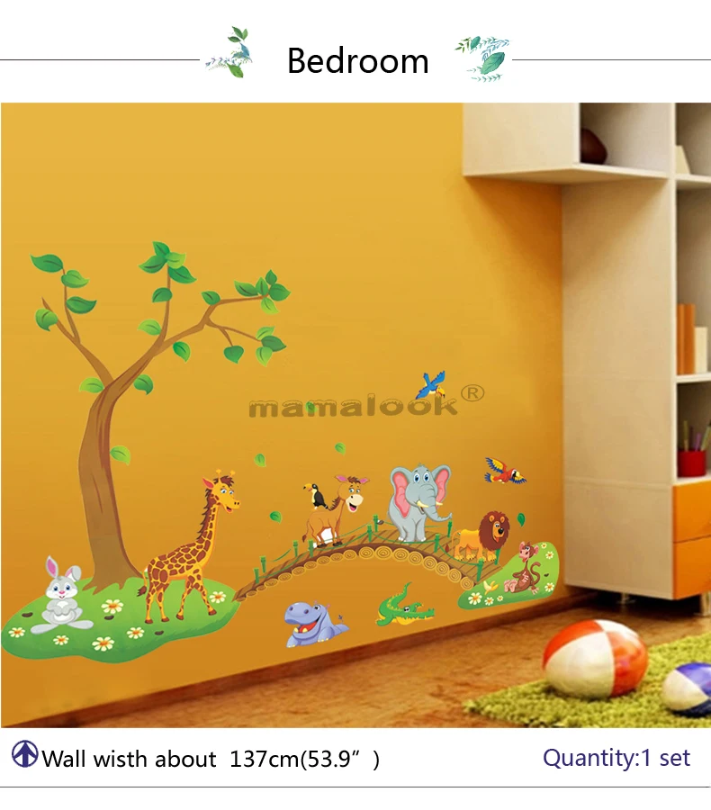 3D мультфильм джунгли дикие животные Дерево мост Лев, жираф, слон птицы цветы наклейки на стену для детской комнаты гостиной домашний декор