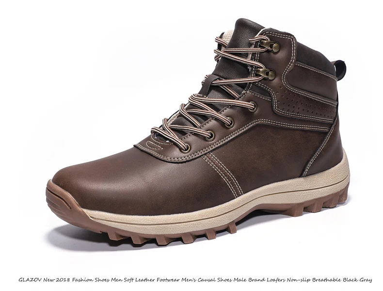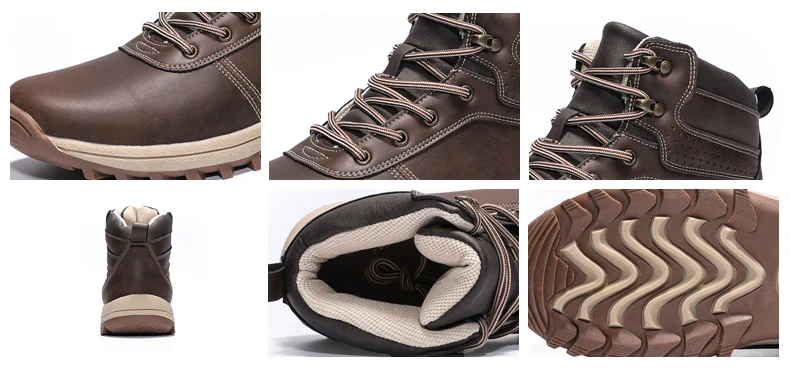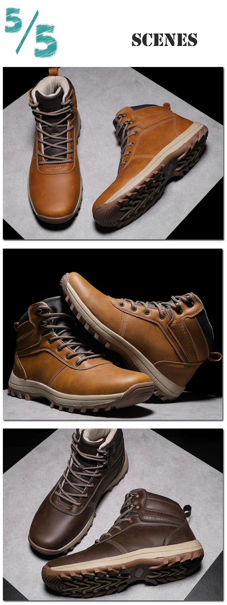 Мужские брендовые зимние ботинки, водонепроницаемые кожаные кроссов...