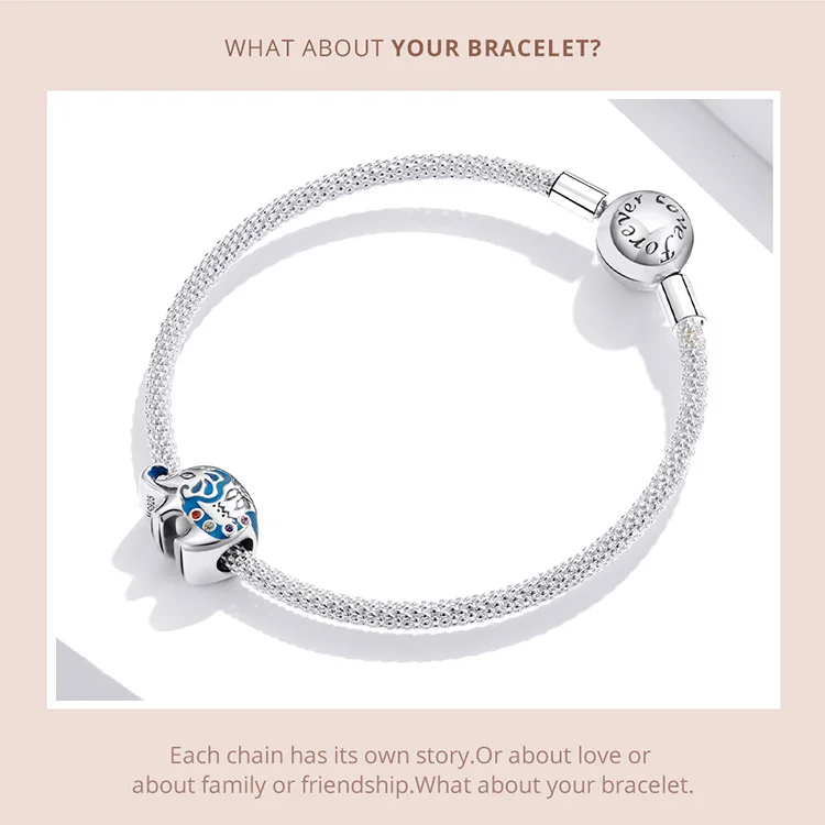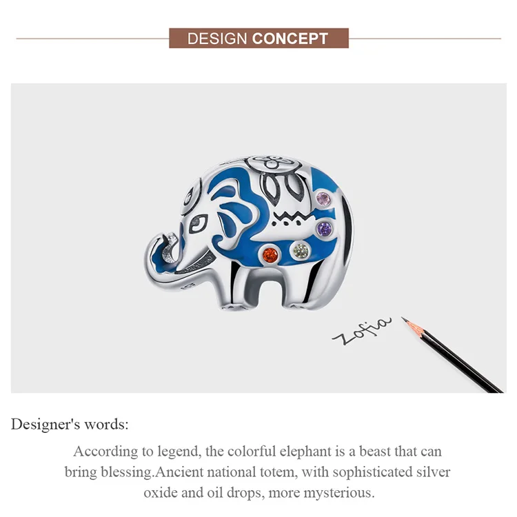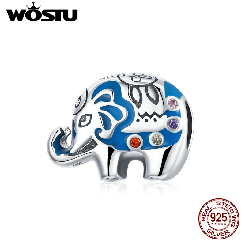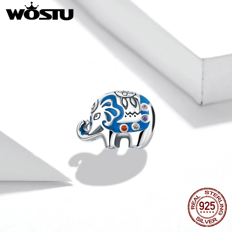 WOSTU Маленький слон красочные Шарм 925 Серебро милые животные куло...