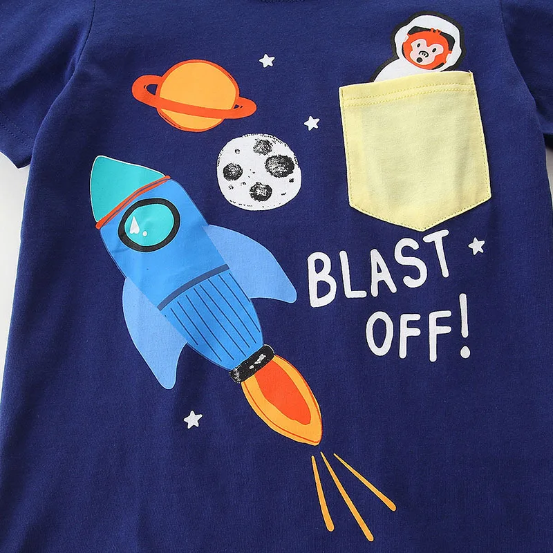 Little Maven2021 летняя футболка для мальчиков с ракетой и одежда с...