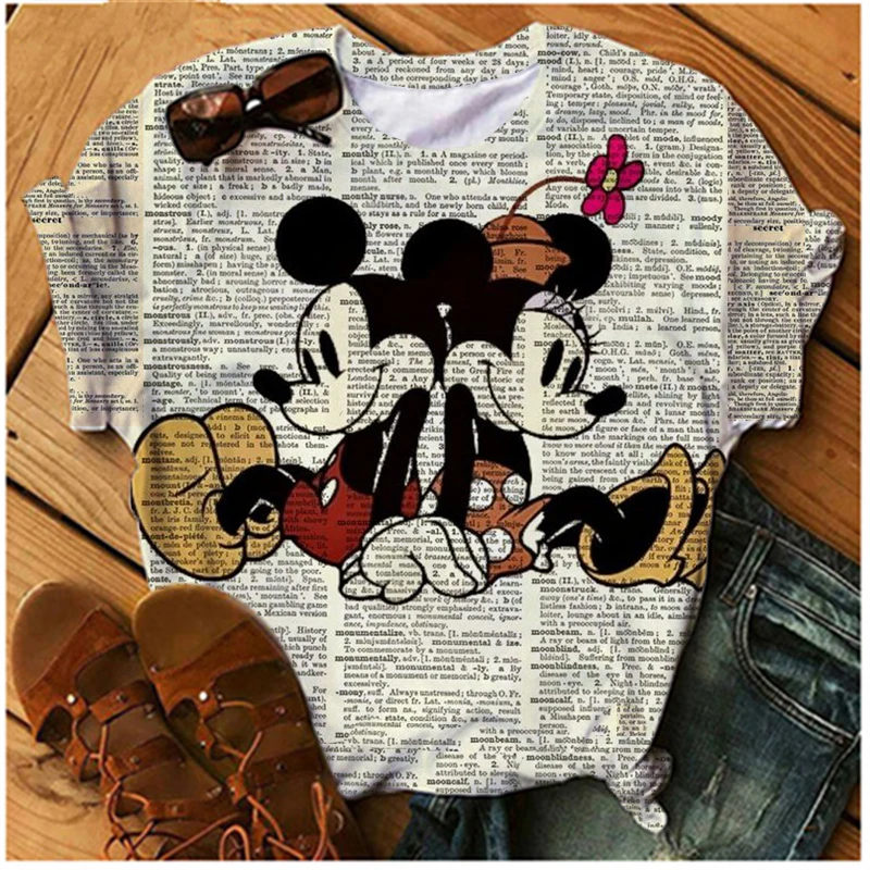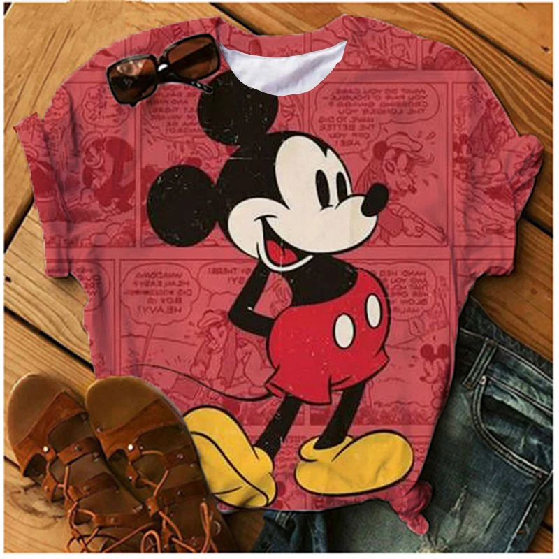 Футболка женская большого размера с коротким рукавом, модный мультяшный 3d-топ Disney в стиле Харадзюку С Микки и Минни, летняя Милая футболка Ulzzang y2k