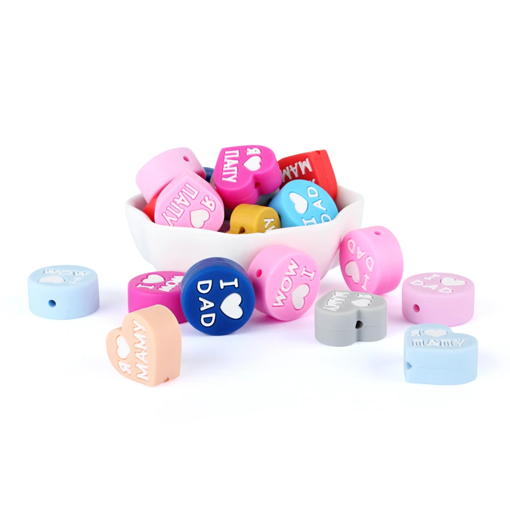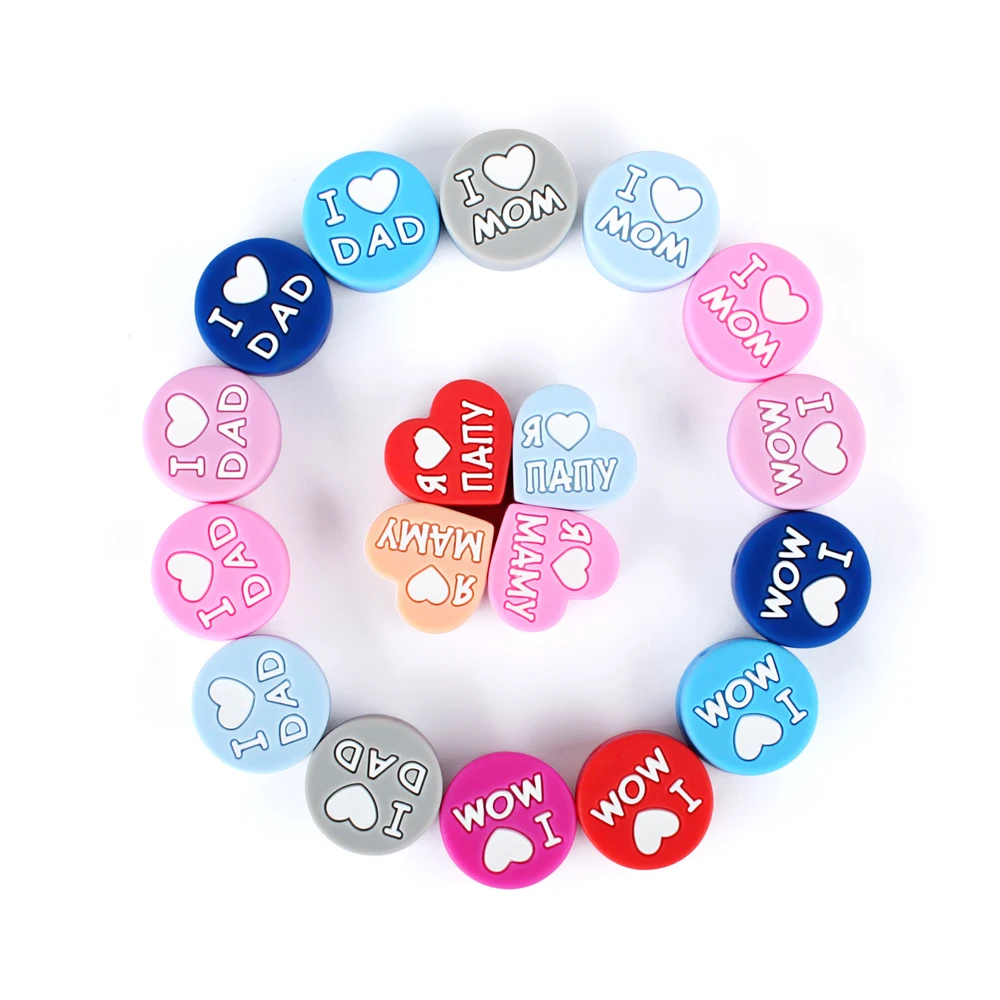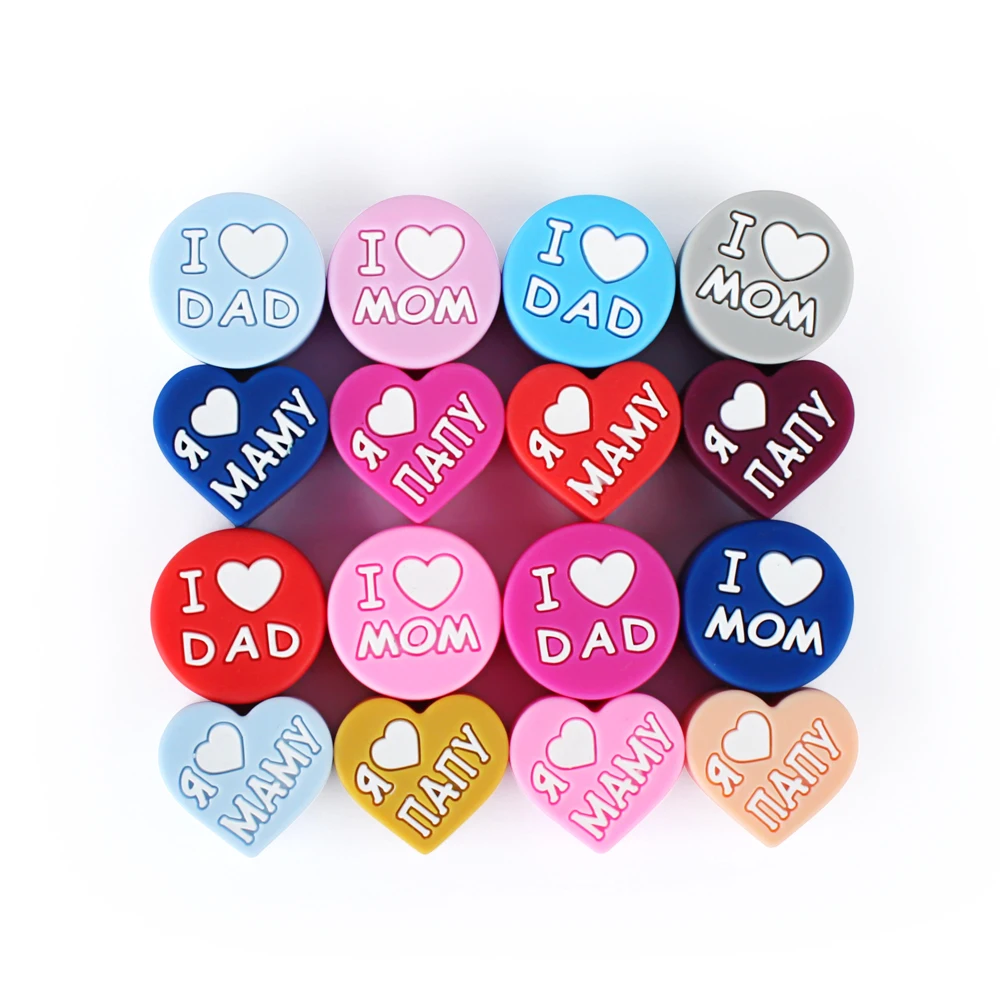 10 шт./лот я люблю маму/DadBaby Прорезыватель бусины силиконовые бусины BPA бесплатно