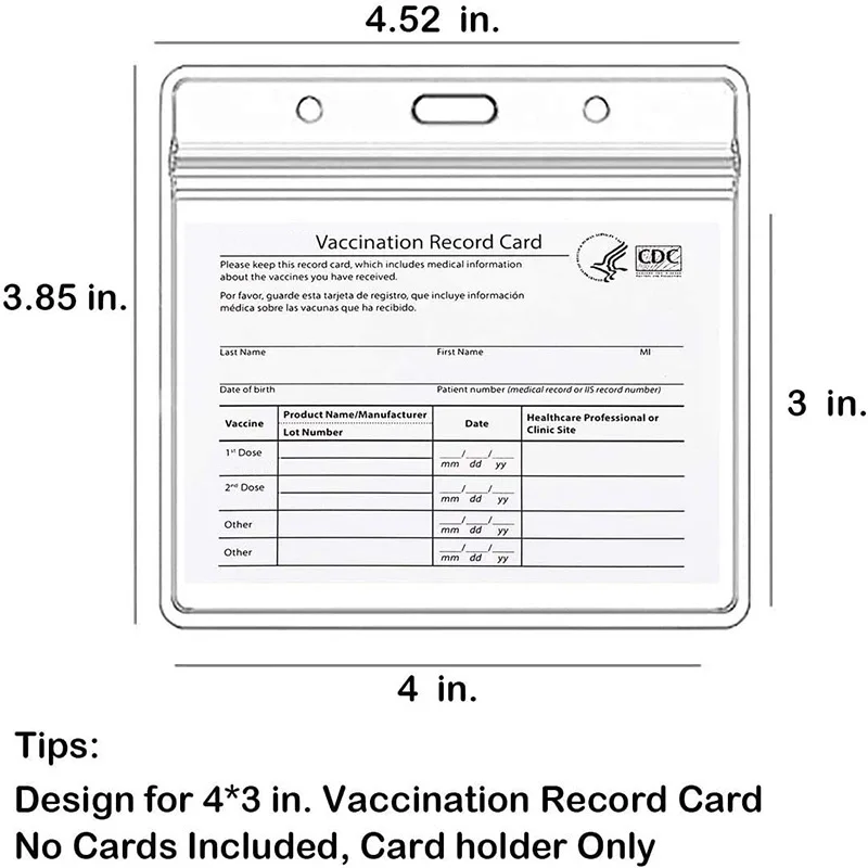 Прозрачный протектор для вакцинации 4 3 в CDC, водонепроницаемый значок для иммунизации 4x3, горизонтальный значок, бирка для удостоверения личности, виниловый пластиковый пакет