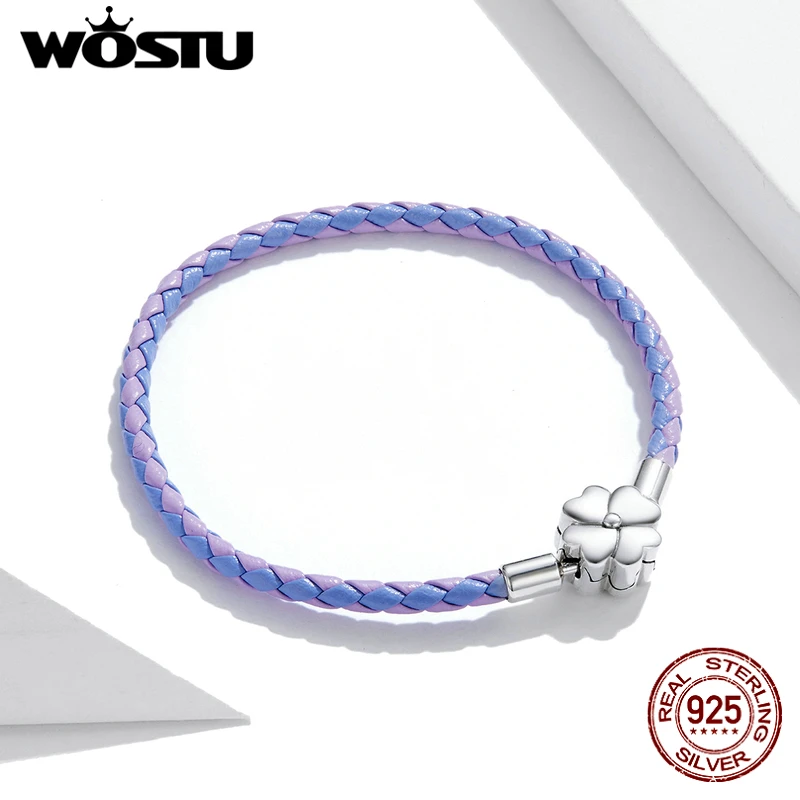 Bamoer, серебро 925 пробы, Lucky, Фиолетовый клевер, браслет для ев...