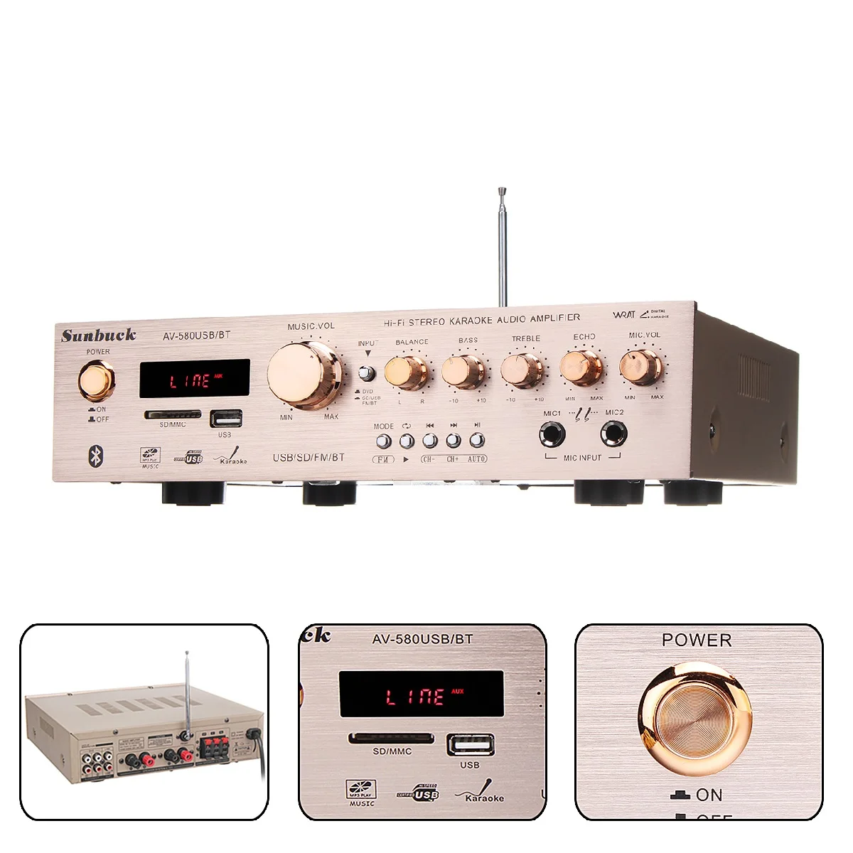Цифровой Hi-Fi усилитель 220 В 580BT усилители Bluetooth, AV объемный аудио процессор, FM, караоке, кинотеатр, домашний кинотеатр, усилитель