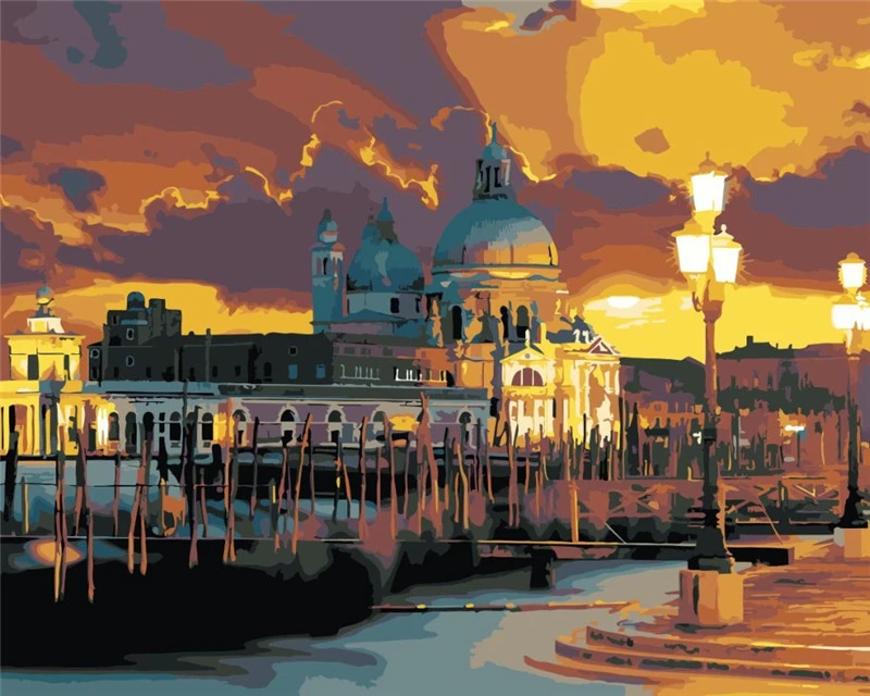DIY картины по номерам, планшетофон, домашний Декор, живопись по номерам, закат, рисунок на холсте, ручная роспись, художественный подарок