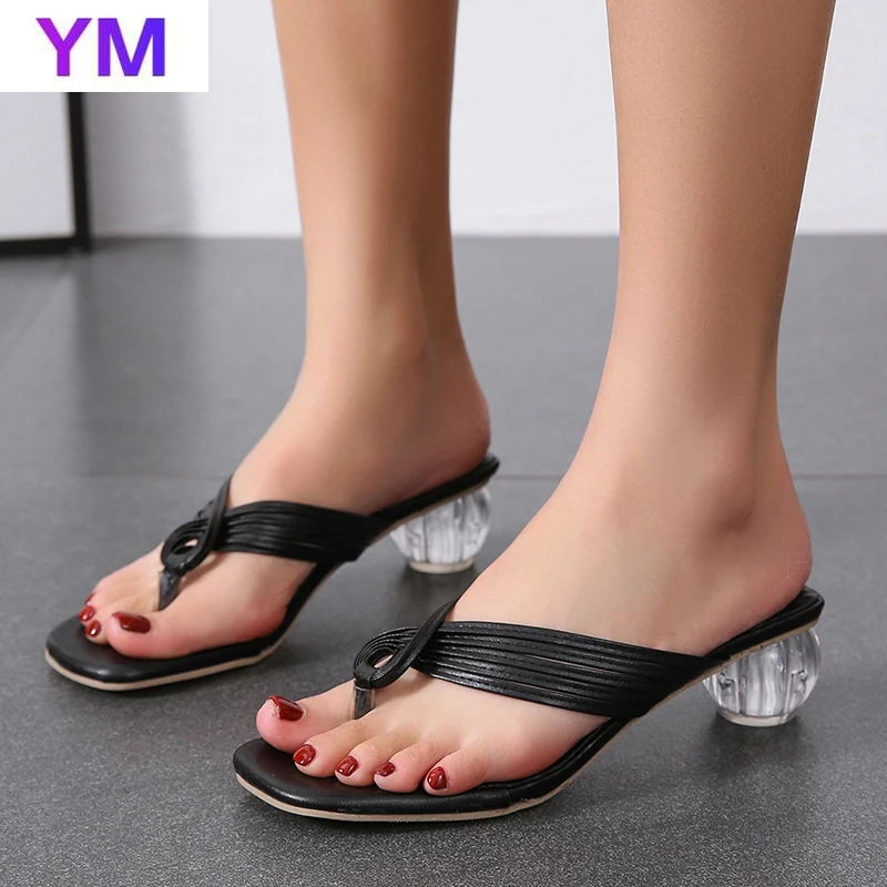 Сандалии женские на прозрачном каблуке, пляжные шлепанцы с жемчугом...