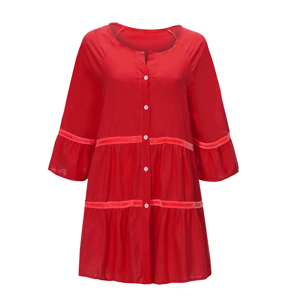 2021 женское платье с оборками из хлопка и льна размера плюс, платья с v-образным вырезом и расклешенными рукавами, Свободный пуловер, Пляжное Платье