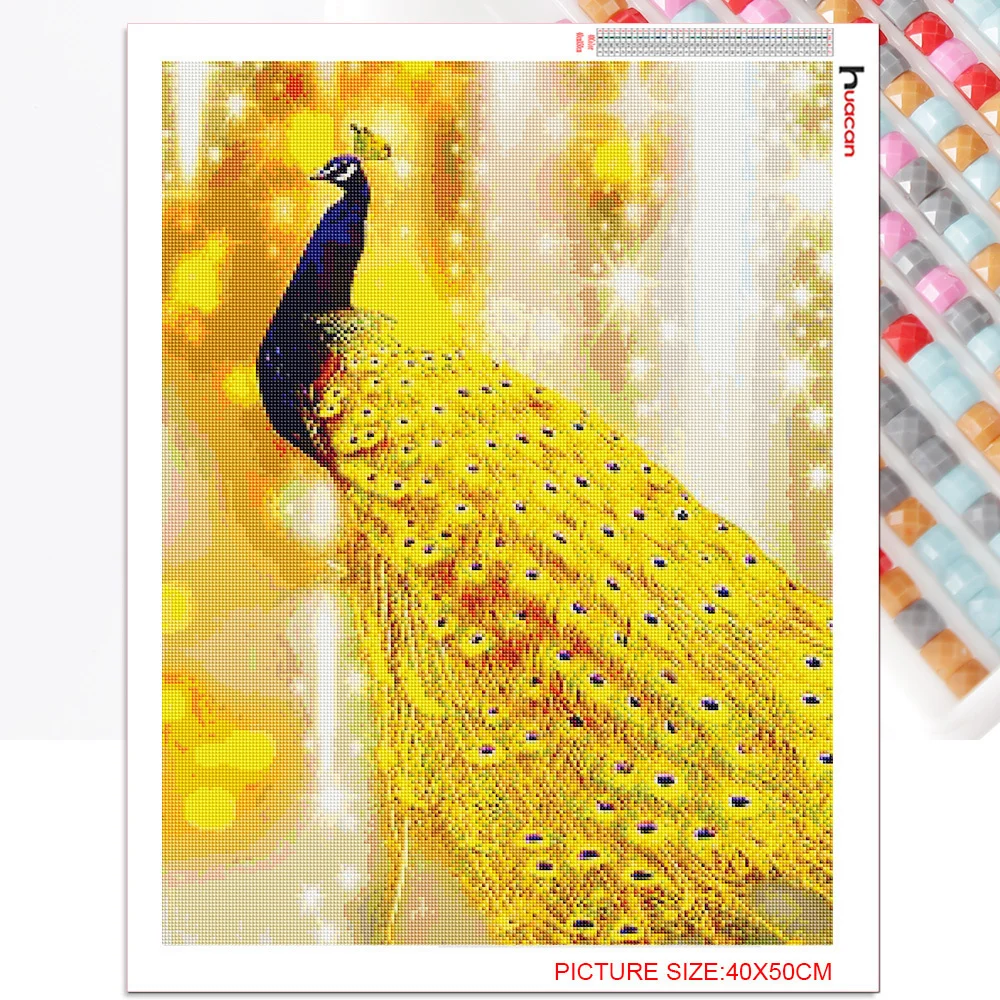 Huacan 5D DIY алмазная живопись с квадратные Стразы Павлин мозаика, алмазная Вышивка Животных Картины для межкомнатных дверей
