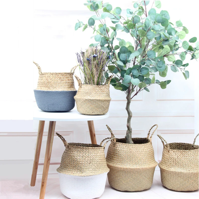 LuanQI ручной работы плетеная корзина для хранения плетеные водоросли Плетеный корзина для белья цветочный горшок домашний сад простой контейнер для живота