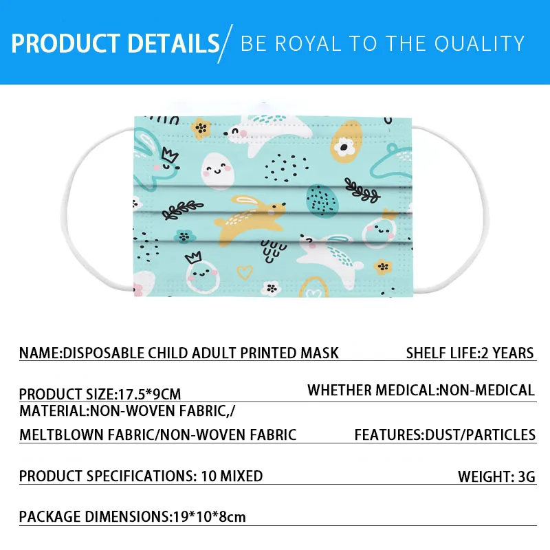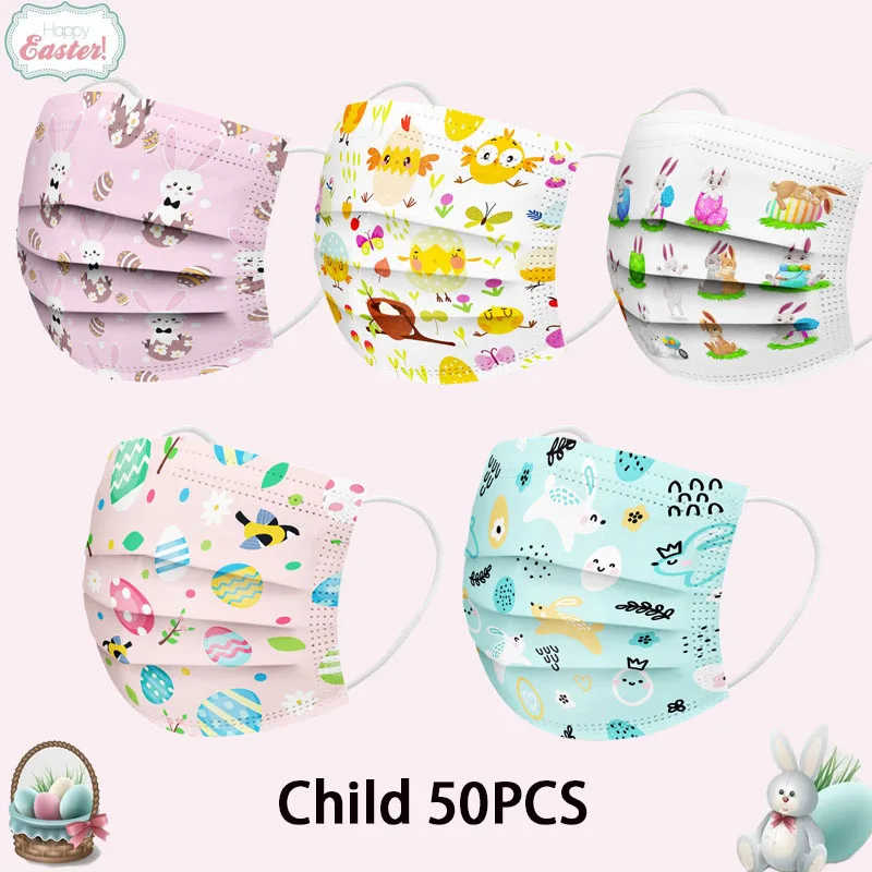 50 шт., одноразовые нетканые маски для детей, 3 слоя