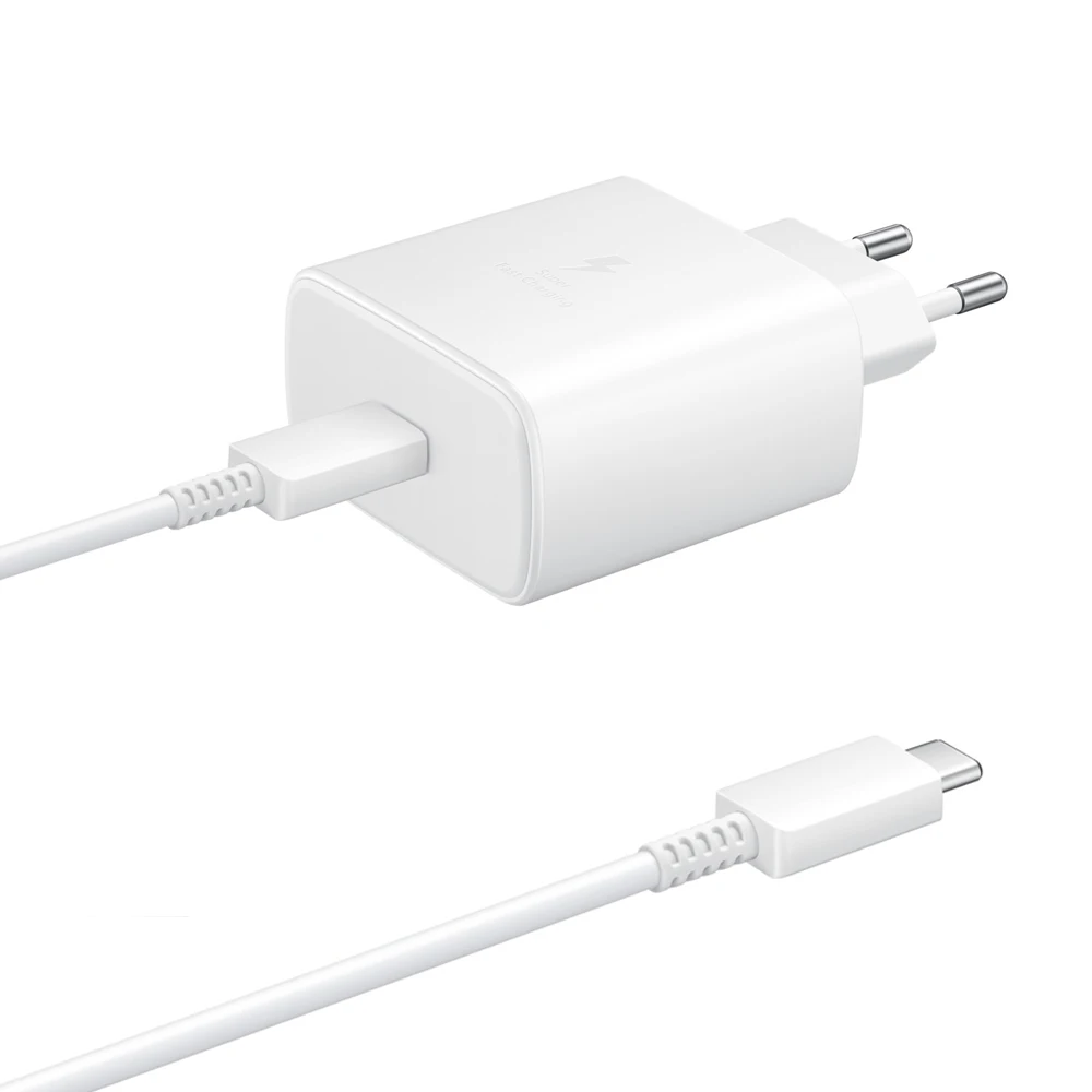 Особенности: -Супер быстрое зарядное устройство Samsung EP-TA845 -Максимальная выходная мощность: 45 Вт -- Штепсельная вилка ЕС/США -- Кабель USB Type-C для Type-C 100 см 5A -Черный/белый