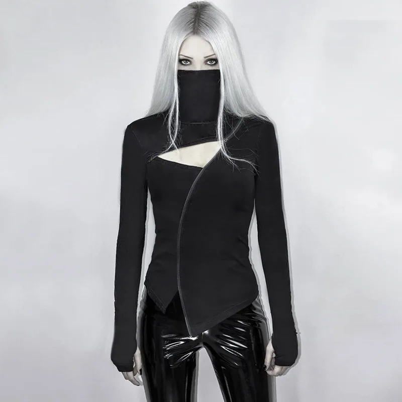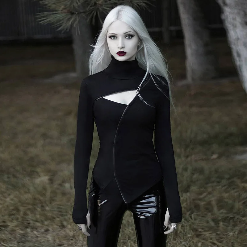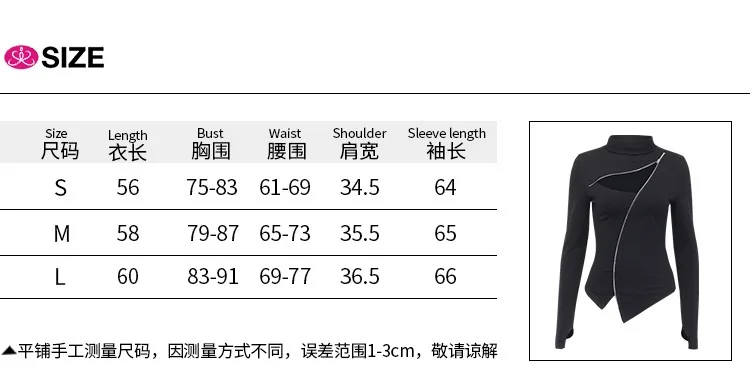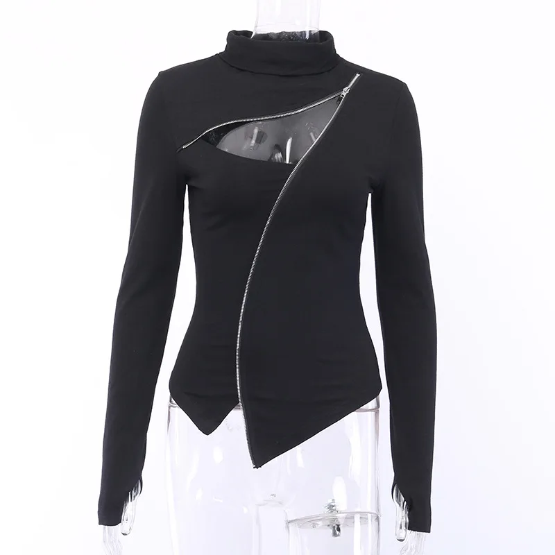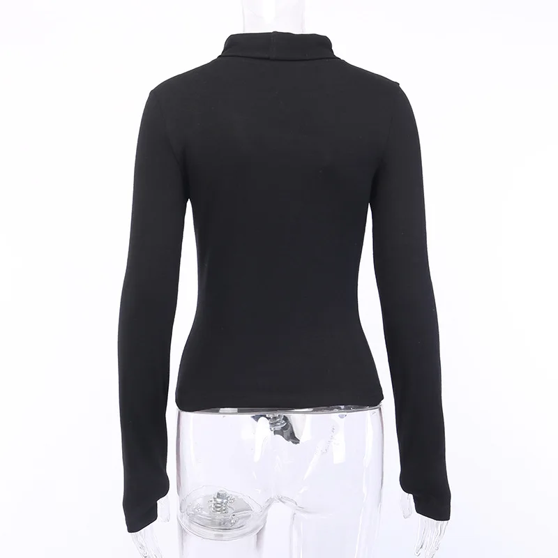 Женская футболка с длинным рукавом Turleneck, черная, на молнии, с ...