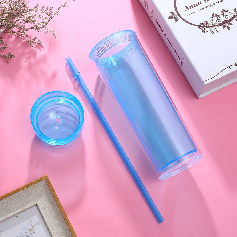 Тощий стакан с соломой 16 унций прозрачная двойная чашка для кофе молочный стакан для холодных напитков сок акриловый лед Свадебные вечерние подарок