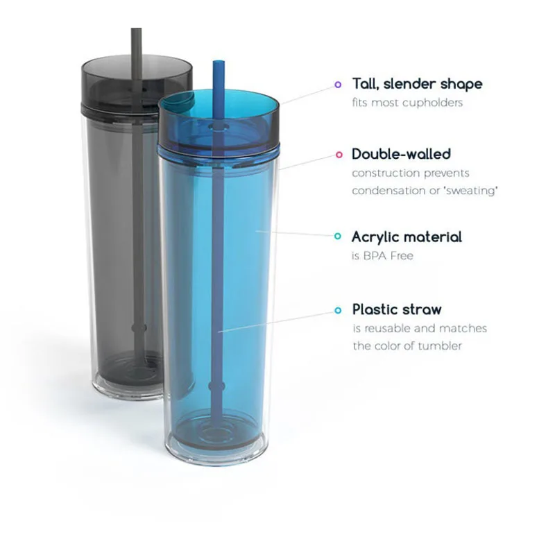 16 унций тонкий пластиковый прозрачный тонкий стакан Двойная Стенка...