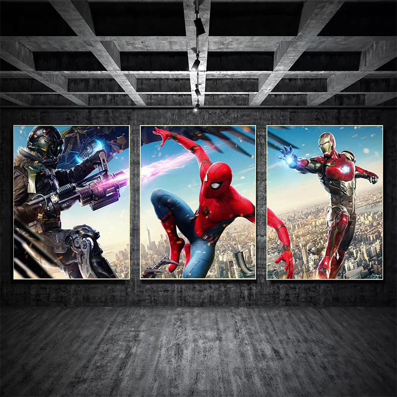 Постеры и принты Marvel, холст с изображением супергероев, Человек-паук, Железный человек, художественный принт, холст, подарок для мальчика, спальня, домашний декор