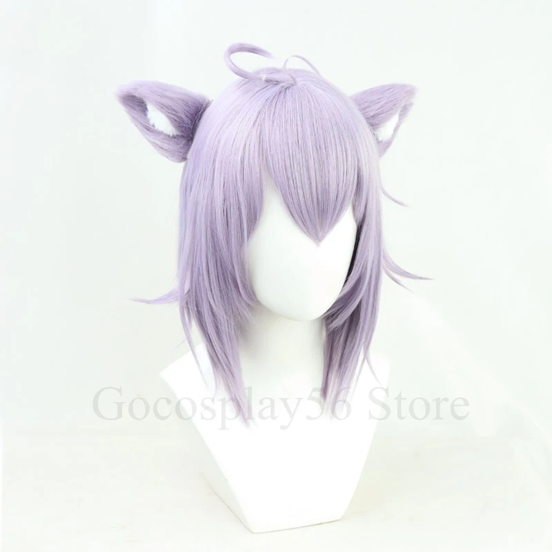 VTuber Nekomata Okayu парик уши Hololive геймеры сиреневые прямые короткие девочки косплей синтетические волосы Holo без граффити ролевая игра