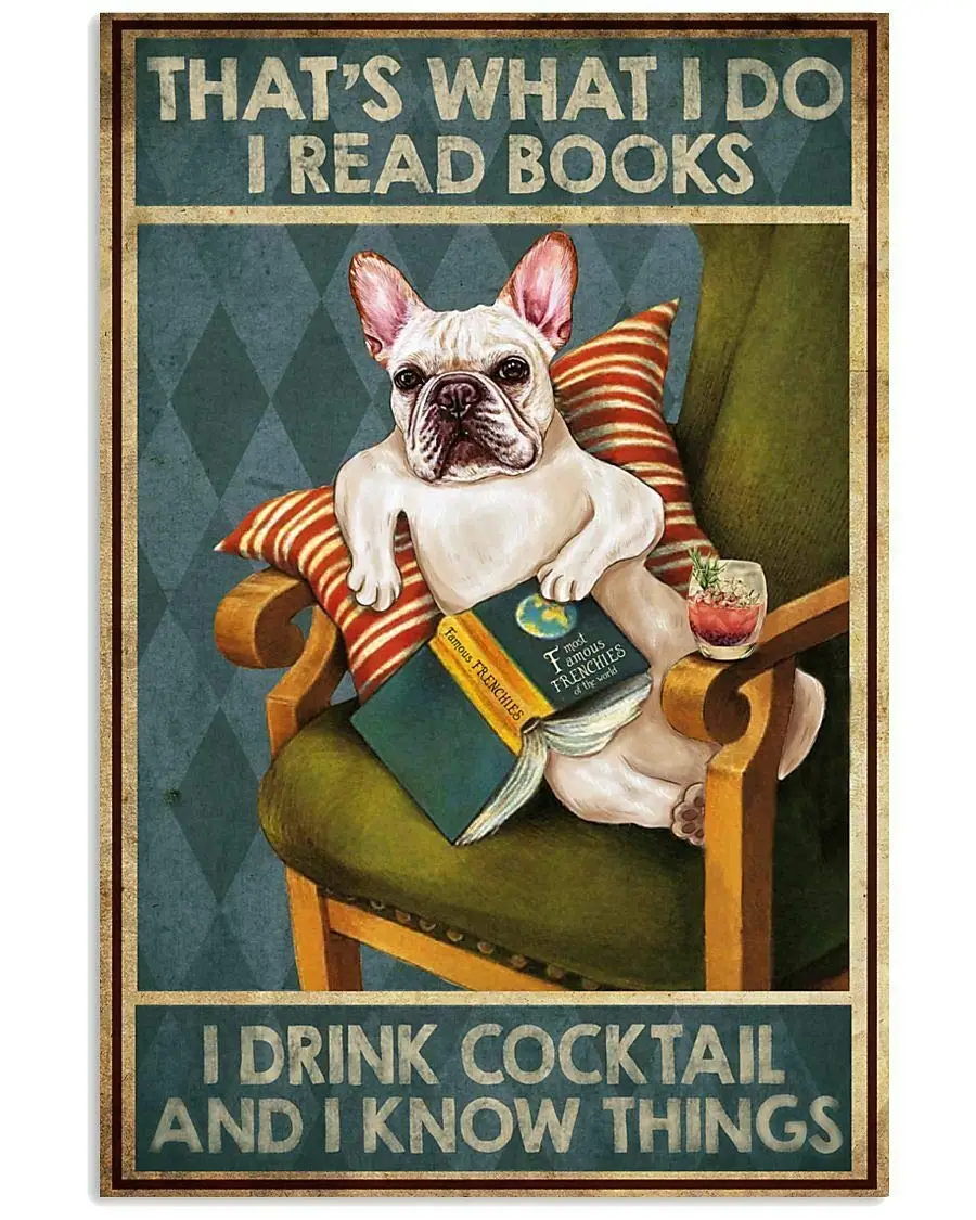 Панель в форме французского бульдога я читать книги I Drink коктейль, искусственно состаренные ржавый выглядят жестяная вывеска металлический знак для душевой кабины коттедж дом ранчо Предупреждение