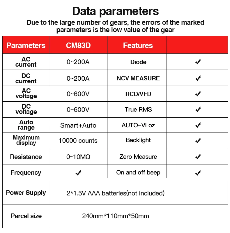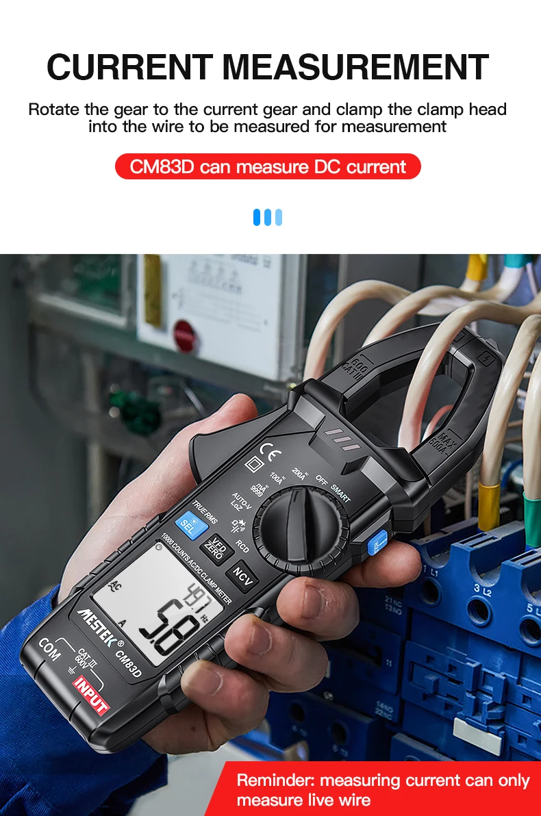 Цифровой мультиметр-зажим MESTEK CM83D, тестер напряжения и силы тока постоянного тока, Бесконтактный индикатор напряжения, Омметр, мультиметр, Инструмент электрика
