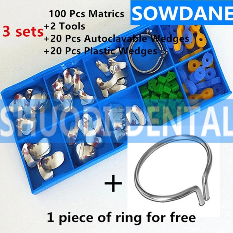 3 комплекта из 100 шт.компл. с 20 резиновыми эластичными клинами и 20 пластиковыми клиновидными секционными контурными матрицами
