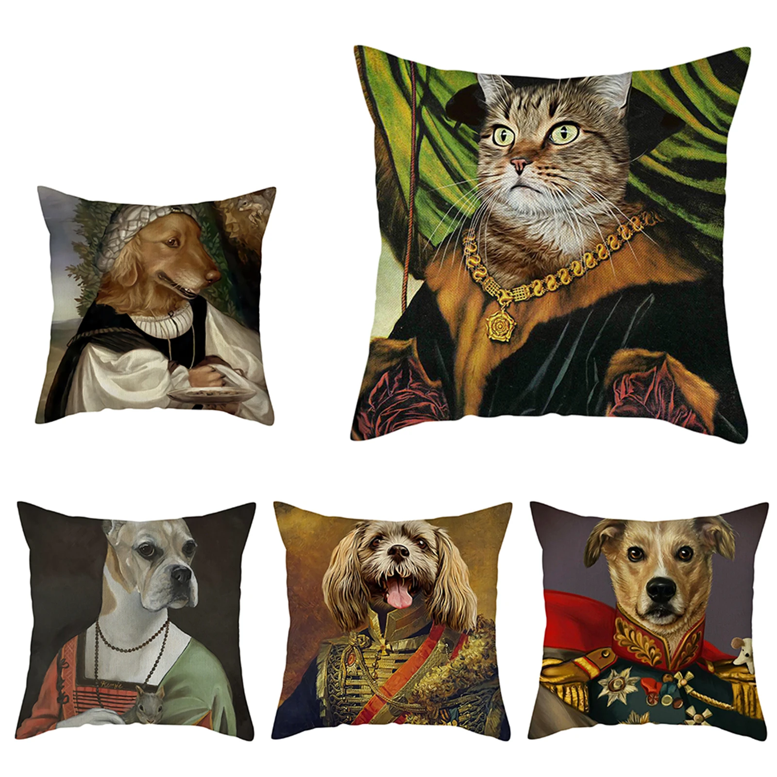 Наволочка для подушки с акварельными животными, портретный наволочк...