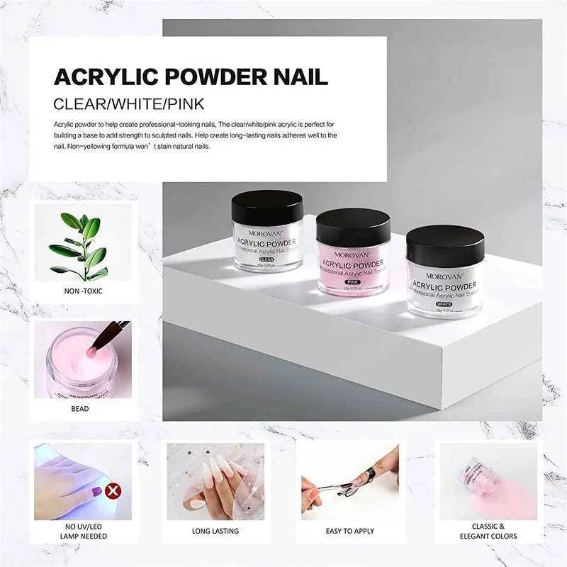 Акриловый гель для ногтей MOROVAN, 40120 мл, акриловый жидкий лак д...