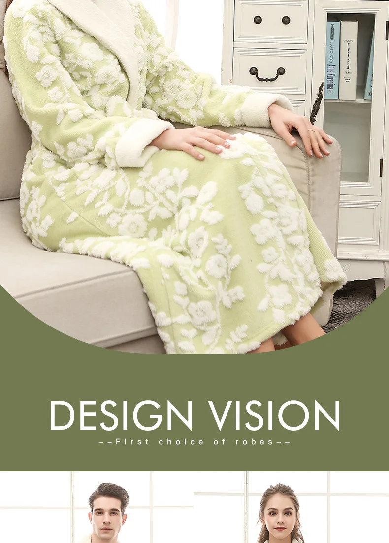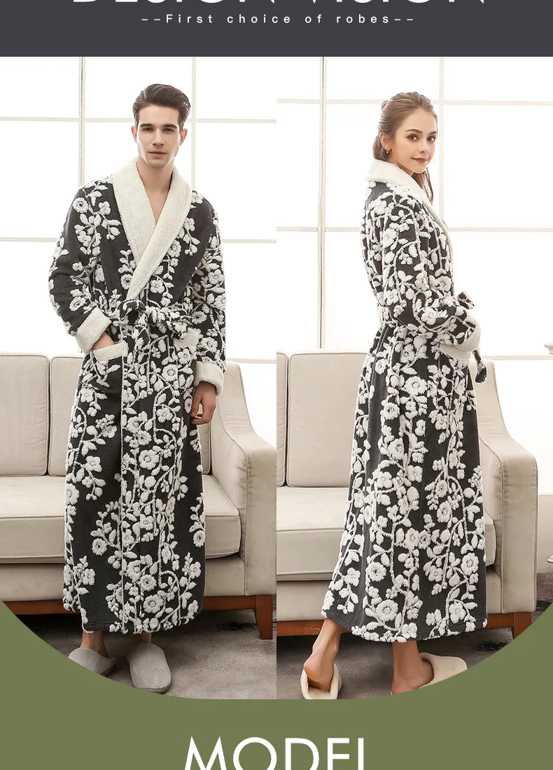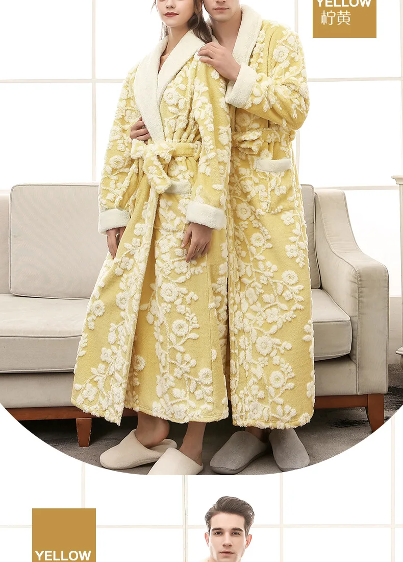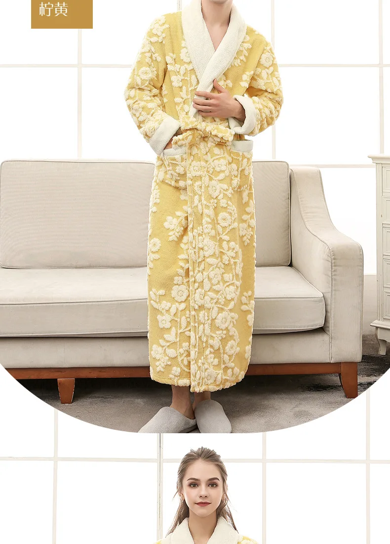 Цветочный фланелевый Халат для пары, зимняя новинка, теплая ночная ...