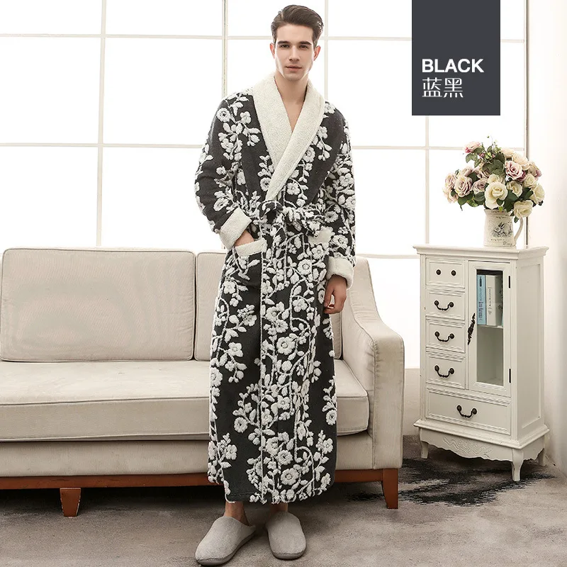 Зимние толстые теплые коралловые кимоно из рунной шерсти Халат Тапочки для влюбленных; Одежда для сна банный халат для сна Для мужчин большого размера одежда для сна банный Халат