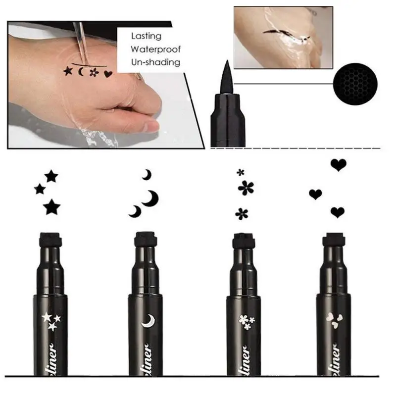 Двухсторонний штамп для подводки глаз Жидкий Макияж штампы с цветами звездами луной печать Ручка штамп водостойкая быстросохнущая подводка для глаз TSLM1