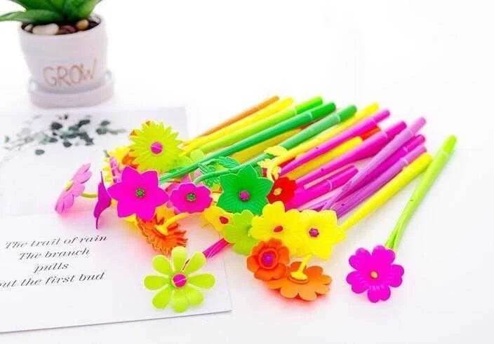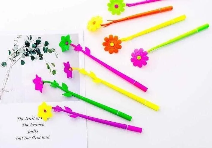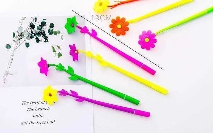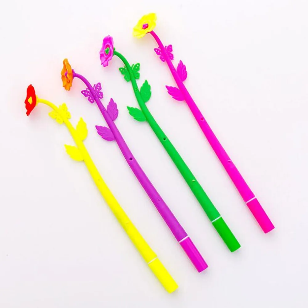 Ellen Брук 1 шт. разноцветных силиконовых креативные милые Kawaii Flower гелевая ручка канцелярские принадлежности для офиса школы поставить Хеллоу Китти, милые ручки