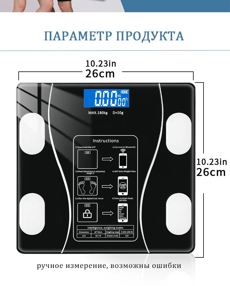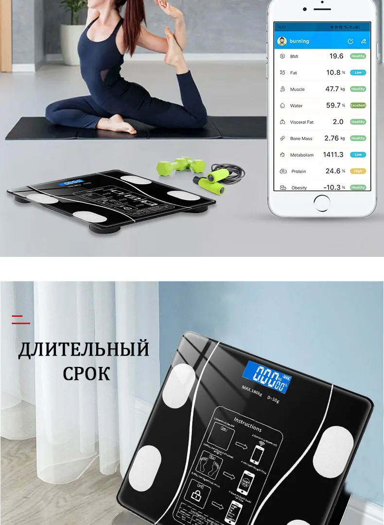 весы электронные Умные напольные весы Ванная комната весы Весы гиря тела электроника для дома Стеклянное зеркало Анализируйте состав тела Баланс ИМТ Беспроводной bluetooth Синхронизировать приложения Рекордный гиря