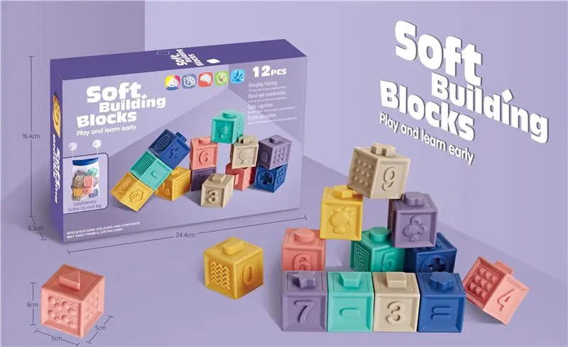 1. Рельефные Мягкие блоки, различные тиснения с 6 сторон, лучшие тактильные, реалистичные и интересные