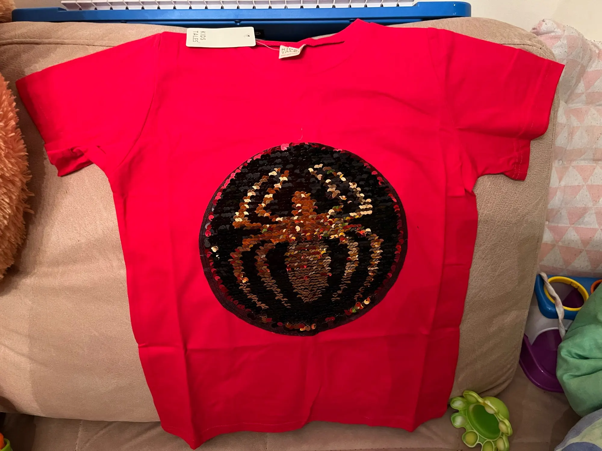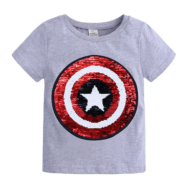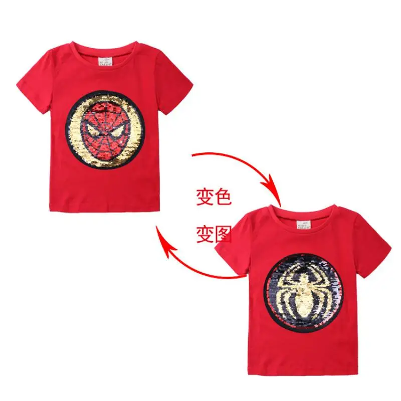 Новинка, летние футболки для маленьких мальчиков и девочек, Волшебная футболка с пайетками и изображением Человека-паука, Повседневная модная Двусторонняя футболка из хлопка, детские топы, футболка