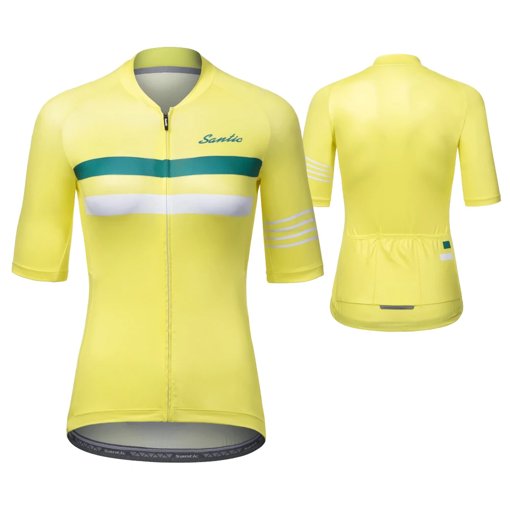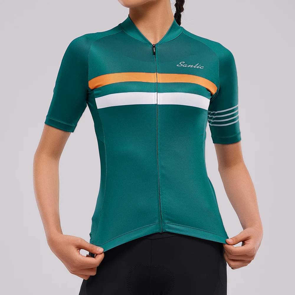 Santic Велоспорт Джерси для женщин короткий рукав полная молния дорожный велосипед рубашки Нескользящая летняя одежда для горного велосипеда Азиатский размер