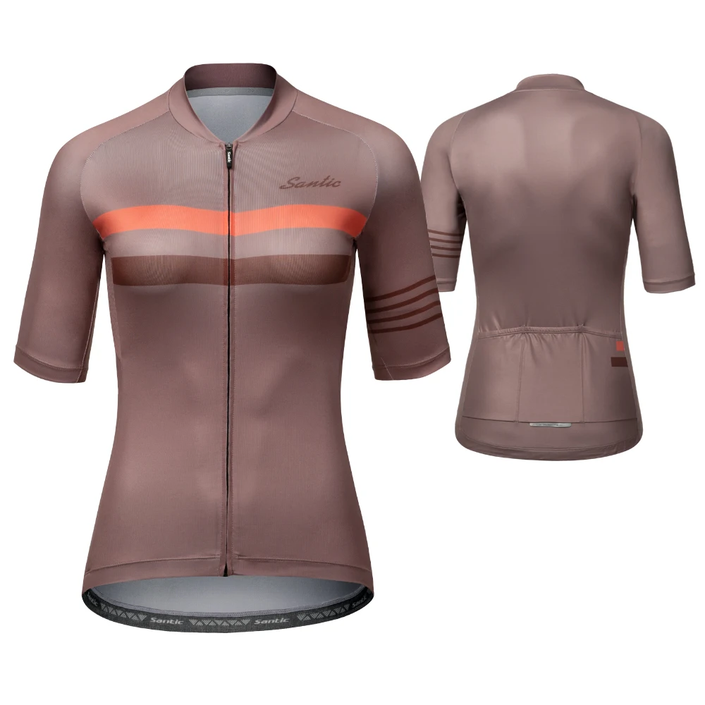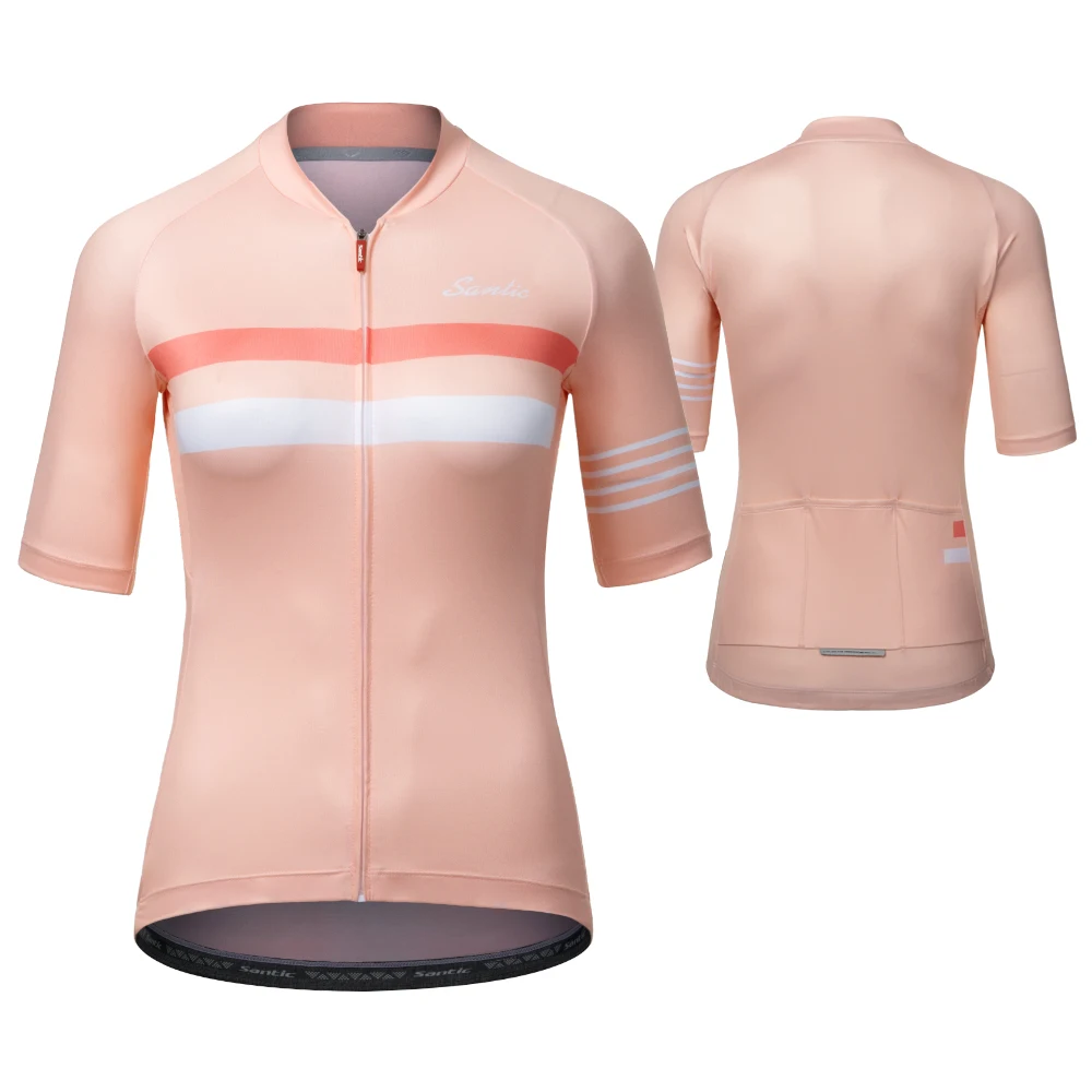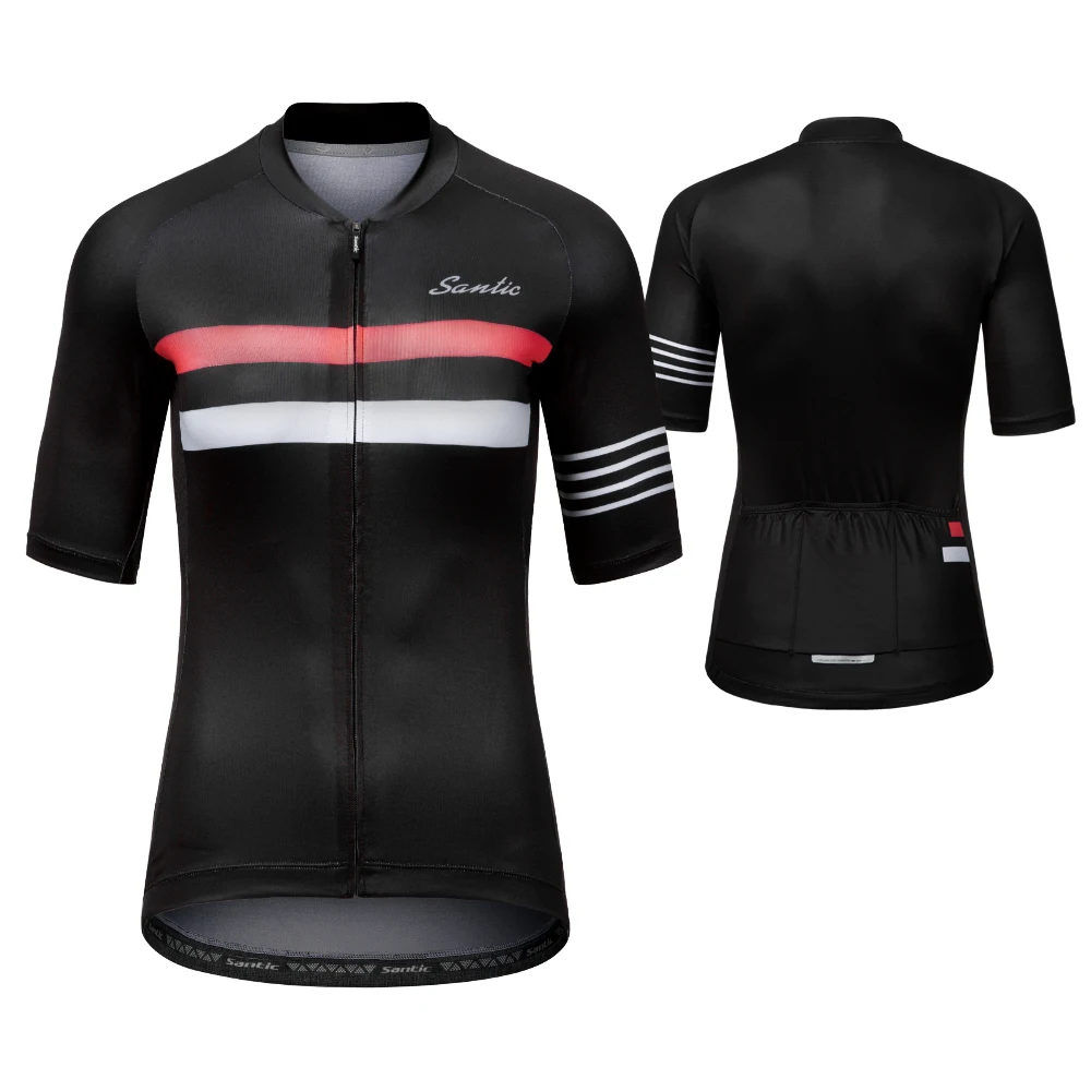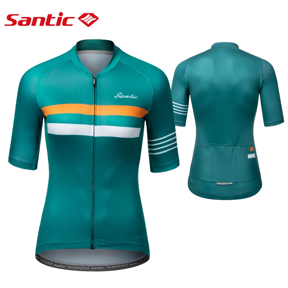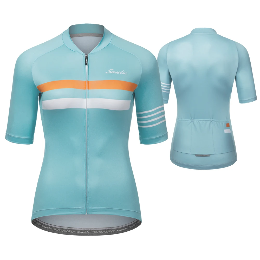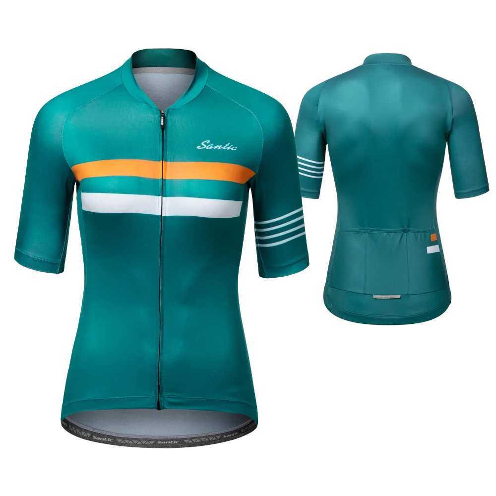 Велосипедная майка Santic для женщин, рубашки с коротким рукавом, на молнии, для шоссейного велосипеда, нескользящая летняя одежда для горного велосипеда, Азиатские размеры