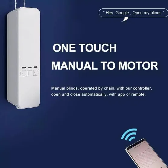 Ручные жалюзи, управляемые цепочкой, с нашим контроллером, открываются и закрываются автоматически. С приложением или пультом дистанционного управления.