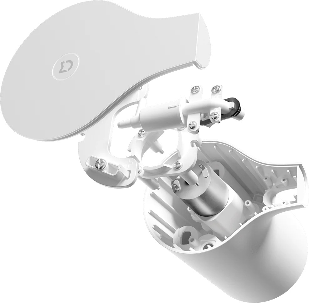 Компактный Электродвигатель помещается в корпус устройства на специальной резиновой подкладке. Он не только образует объемную пену, но и делает ее почти бесшумной. Кроме того, благодаря низкому энергопотреблению всего 4 батареек AA, ему будет достаточно на протяжении 9 месяцев работы.
