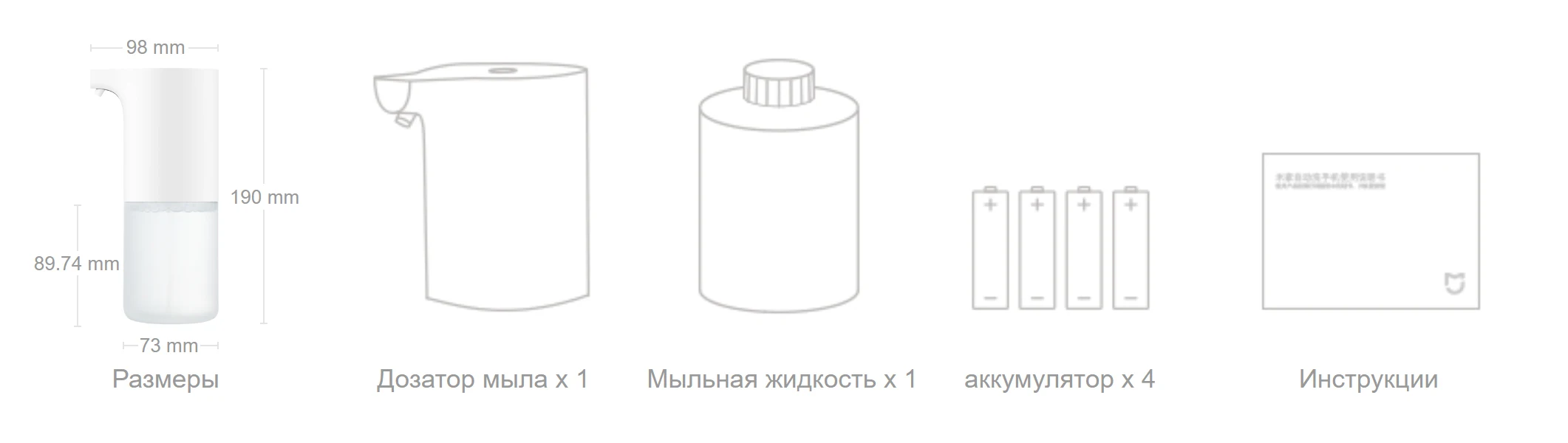 Компактный корпус конструкция диспенсера продолжает традицию минимализма устройств Mijia, что позволяет легко поместиться в любой интерьер кухни или ванной комнаты. Бутылка с мылом изготовлена из высококачественных материалов с матовой поверхностью, сохраняя чистый и аккуратный образ устройства.
