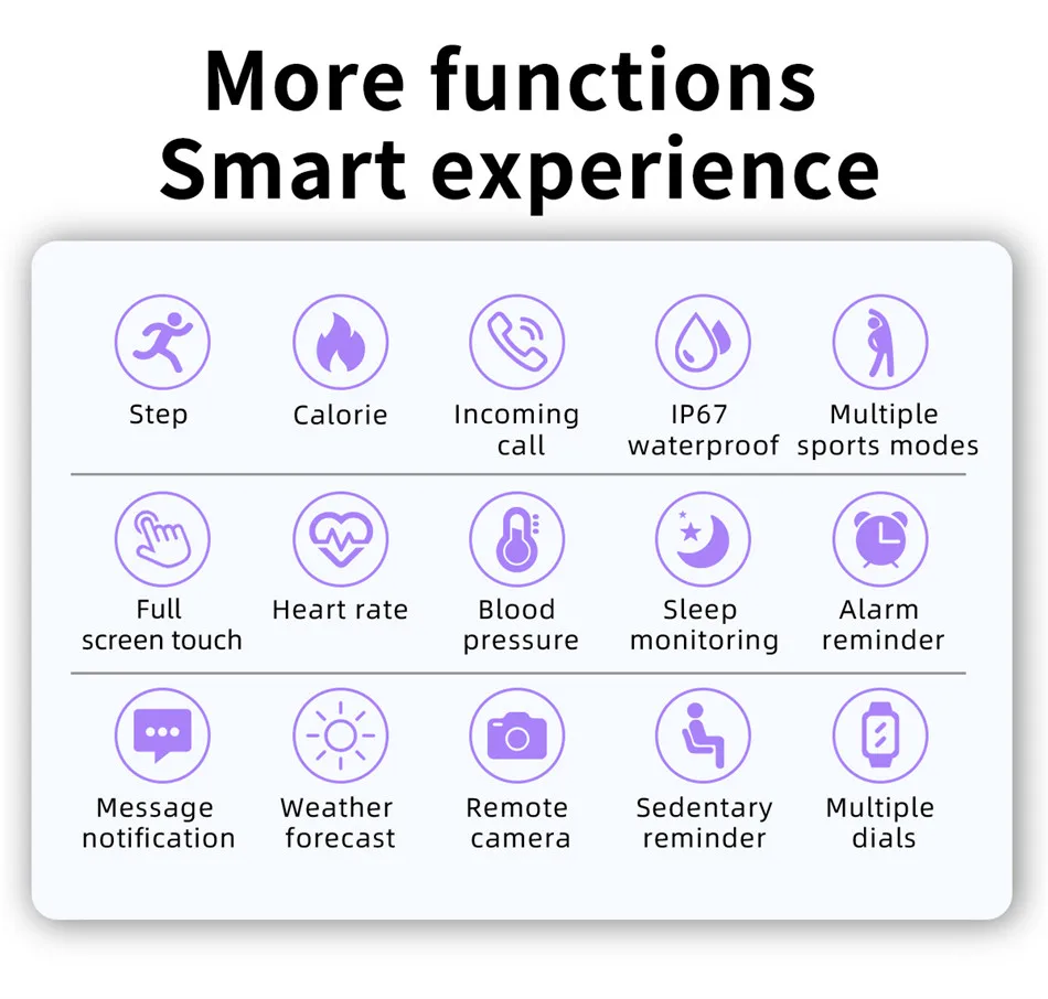 СердцеМониторинг скорости/артериального давления, отображение времени/даты, шагов, расстояния,Калории, мониторинг сна, напоминание о звонках, напоминание о сообщениях в социальных приложениях,Напоминание о сидячем положении, напоминание о том, что функция включенаПереключается на стороне приложения (входящий вызов, SMS, Wechat, QQ, Facebook,Twitter, LinkedIn, WhatsApp, Line, Instagram, Snapchat, Skype и другиеМобильный телефон) и напоминания о событиях, такие какСидячая, будильник, питьевая вода, лекарства и т. Д., удаленноИзображения, поднимите запястье, чтобы осветить экран, переключите формат,Секундомер, найдите телефон