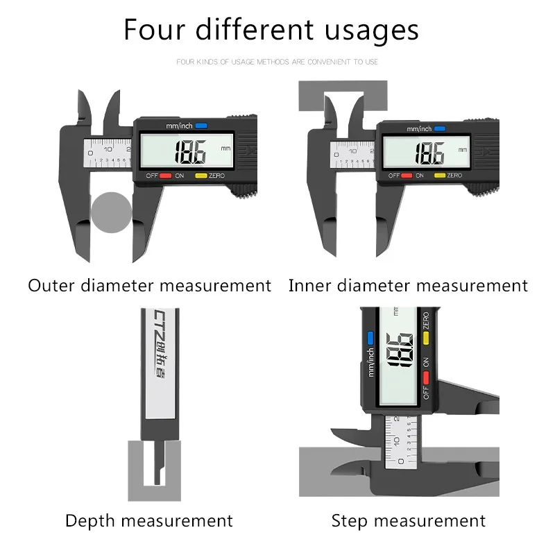 Особенности:** Изготовлен из высококачественных материалов, хорошего качества и длительного использования.** Печать логотипа на кнопках является четкой и красивой, мастерство изысканное, полировка гладкая, и рука чувствует себя комфортно.** Большой экран цифровой дисплей, легко наблюдать за значением, прост в использовании.** Весы напечатаны четко, и точность измерений мала, что удобно для измерения и использования.** Потяните линейку, чтобы включить ее, и она не будет автоматически ВЫКЛЮЧАТЬСЯ в течение пяти минут, экономя энергию и электричество.** С измерительным стержнем глубины, нажмите крышку аккумулятора вправо, чтобы заменить батарею.