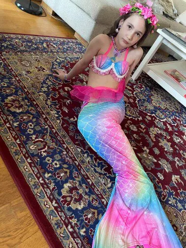 Хвост русалки хорошего качества из легкого эластичного материала, который быстро сохнет. Флиппер идеально помещается внутри и сползает к хвосту через хороший дискретный карман на молнии внизу. Честно говоря, я был удивлен, увидев эту деталь в этой цене, особенно потому, что это второй хвост моей дочери. Рекомендуем этот товар для любого фаната русалки.