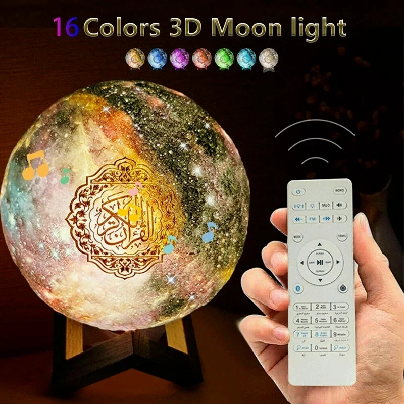 Мусульманский Bluetooth Коран динамик 3D печать лампа лунного света беспроводной цветной пульт дистанционного управления Коран плеер сенсорный светодиодный фонарь