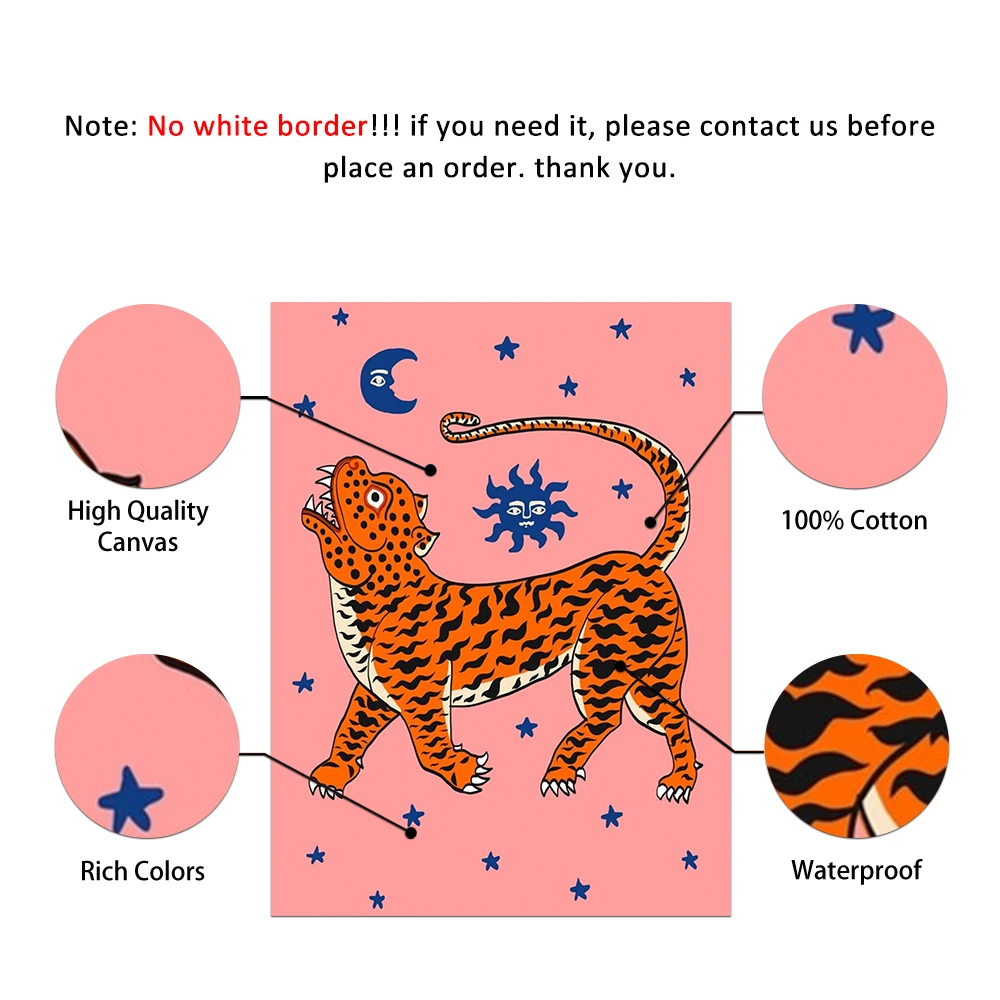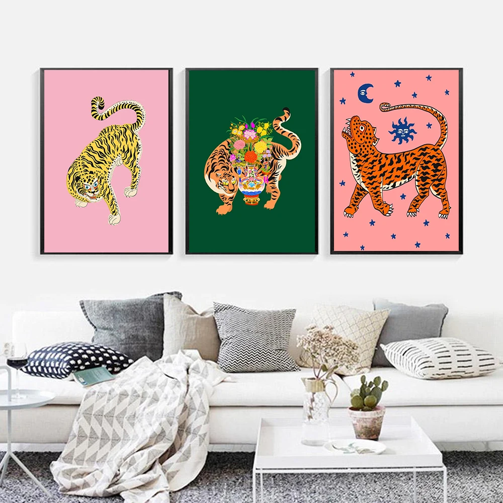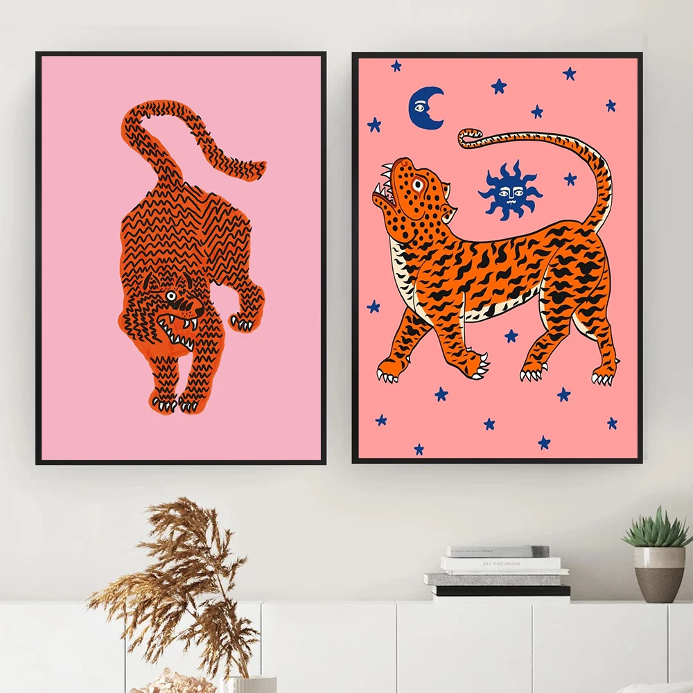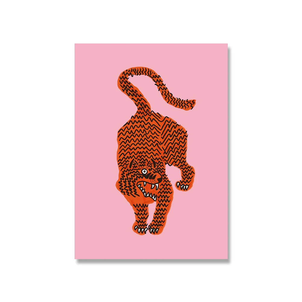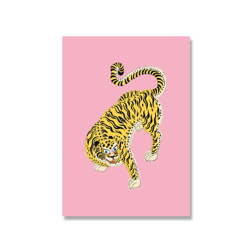 Абстрактная Скандинавская дикое животное, тигр удачи картина розовый холст для живописи Wall Art Плакаты принты интерьер Гостиная домашний декор