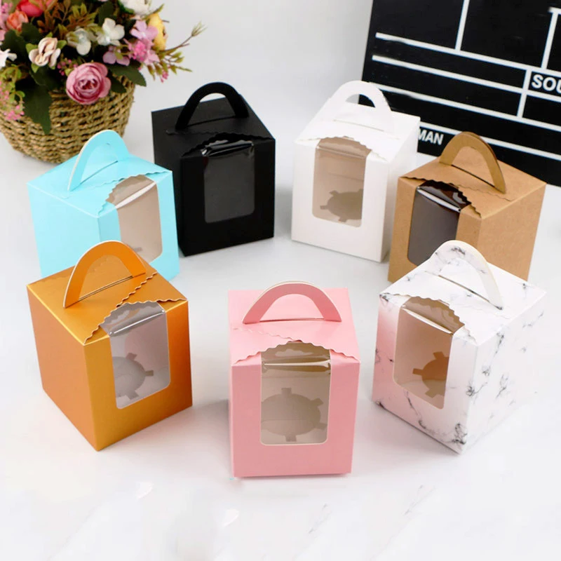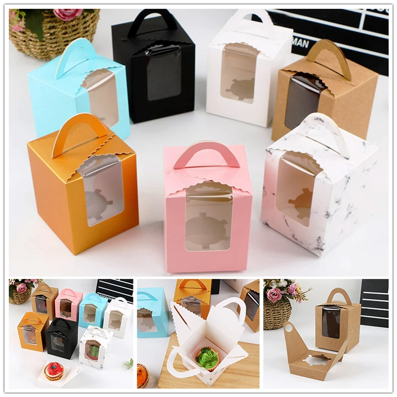 Портативный прозрачное окно крафт-бумаги кекс подарок Коробки Свадебная коробочка для конфет на вечеринку торт шоколадное печенье коробка упаковочная