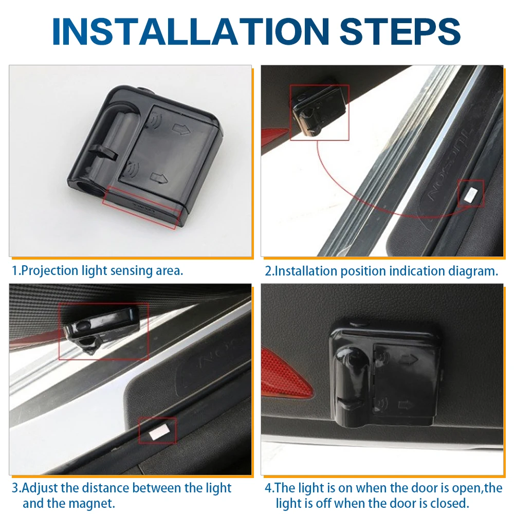 Описание товараХарактеристики:Напряжение: 12 ВТип светодиодный: светодиодный чипПотребляемая мощность: 5 ВтМатериал: АБС-пластикУстанавливается просто, хорошо выглядит и полезнаНизкое энергопотреблениеПитание: использование 3 шт. аккумуляторов AAA (аккумуляторы в комплект не входят)Посылка включает в себя:2 шт. логотипа дверных огней (2 шт. для 2 дверей)