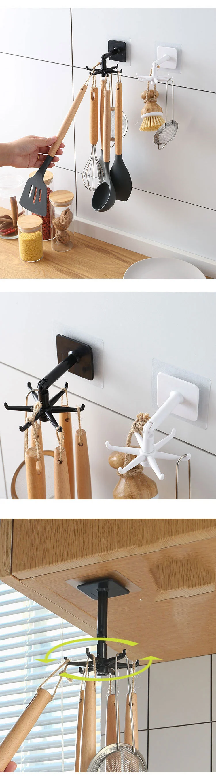 Настенный вращающийся крючок на 360 градусов, кухонные аксессуары, ...