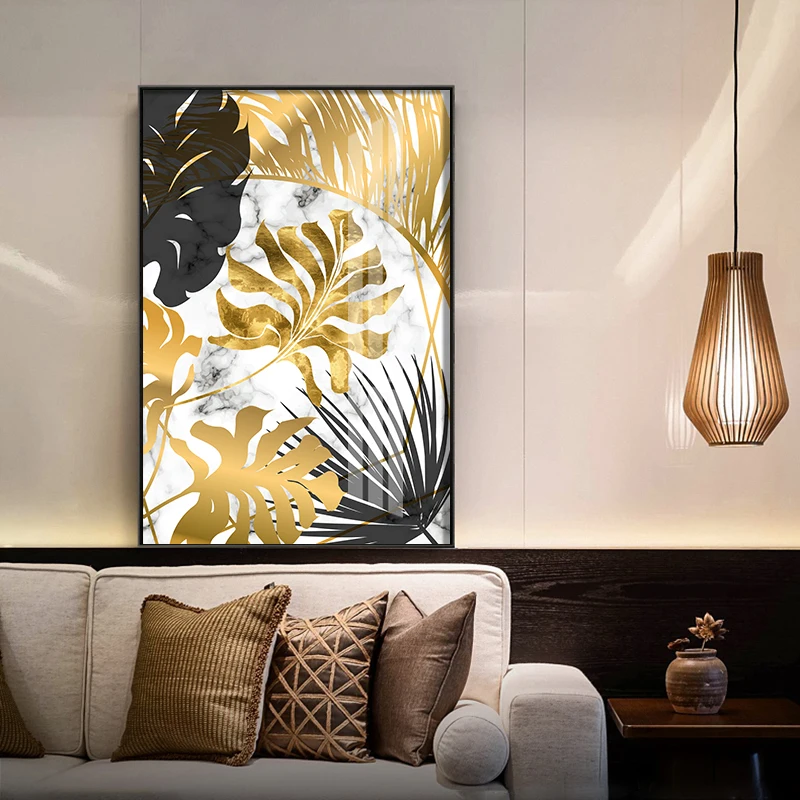 5D алмазная живопись сделай сам, золотой черный лист, растение, Алмазная мозаика, вышивка мрамором, скандинавский постер, вышивка крестиком, украшение для дома