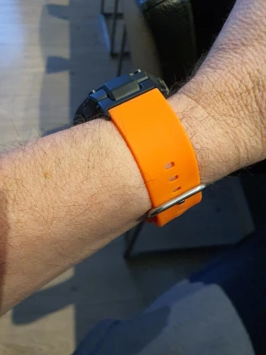 The strap is very comfortable and the rubber is high quality, but after a month the color of the buckle has peeled off.If the paint had not peeled off the seller would have received 5 stars