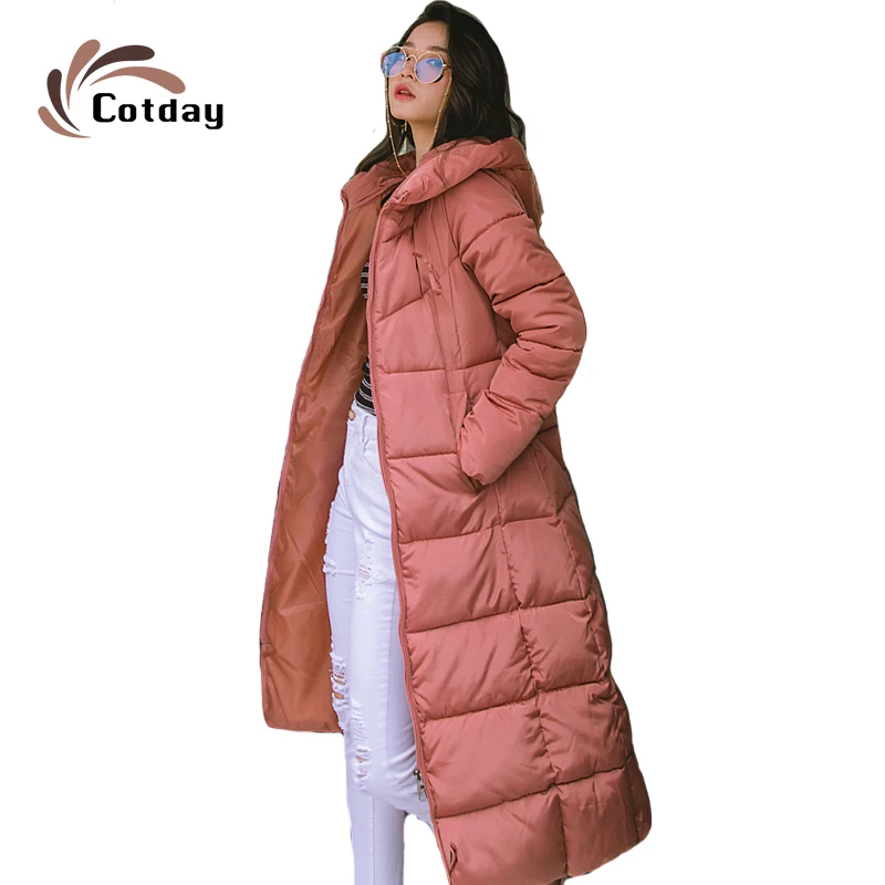 Для женщин зимнее длинное пальто с капюшоном био Пуховое пальто, ку...