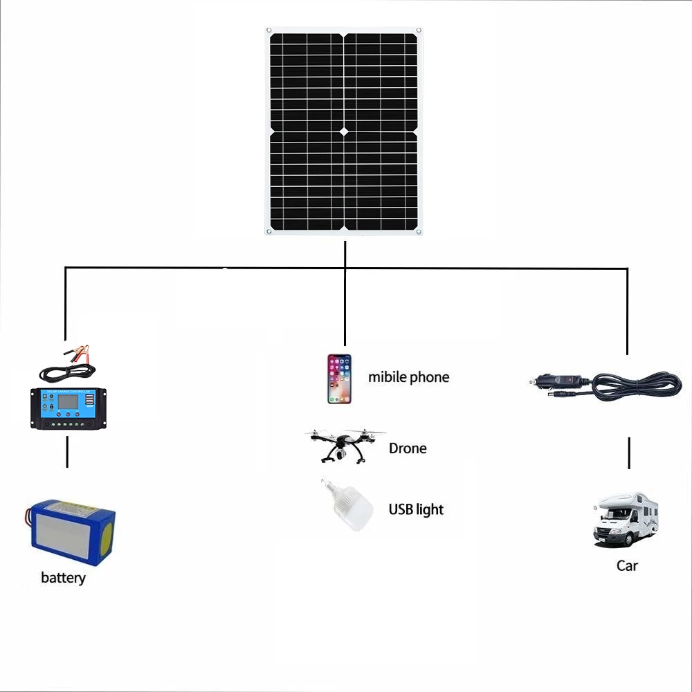 Гибкая солнечная панель 20 Вт 18 в 30 Вт плата контроля заряда DC зарядное устройство USB для автомобиля яхты лодки светильник 12 В батарея для кемпинга Зарядка телефона